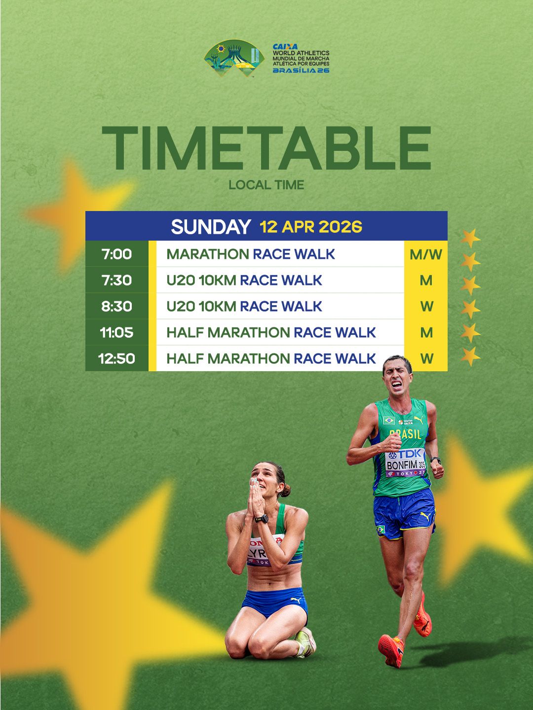 The next edition of the World Athletics Race Walking Team Championships will be held in Brasilia, Brazil on 12 April 2026.
